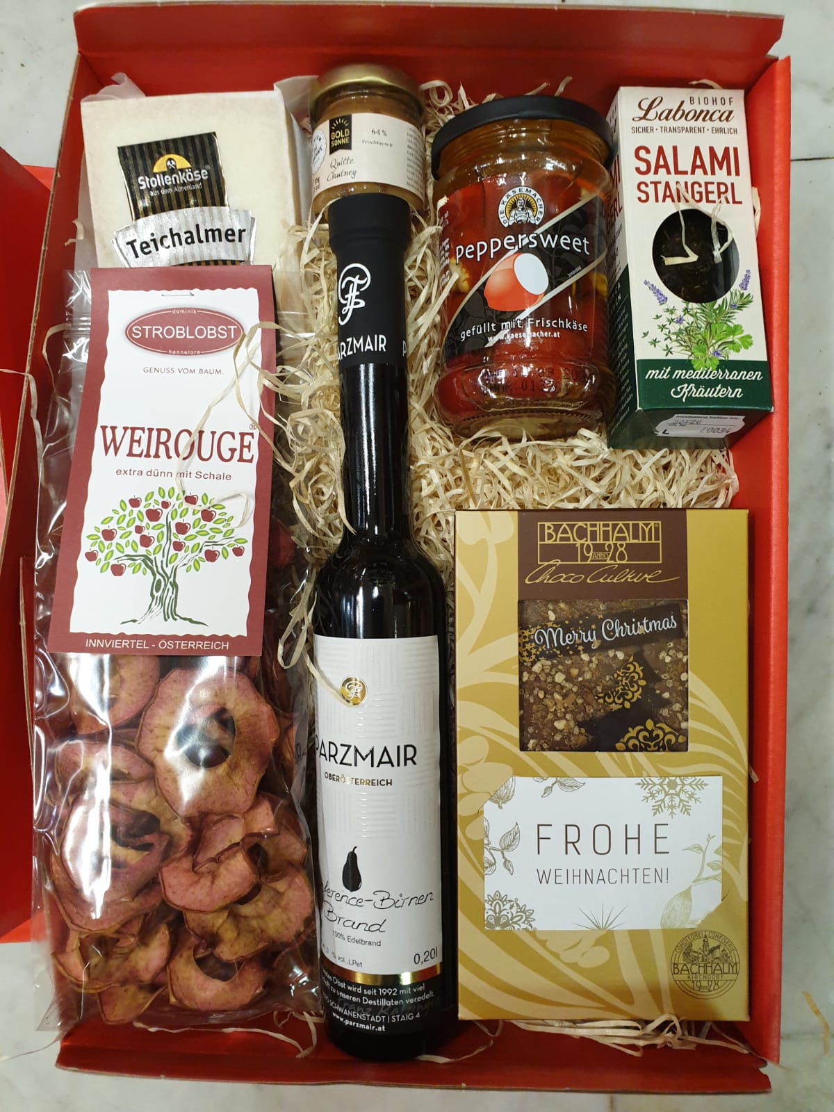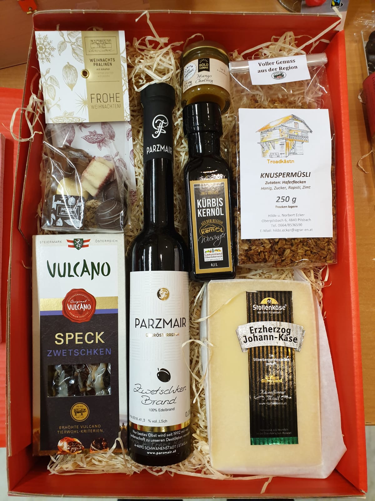 Weihnachtspackerl reich an regionalen Köstlichkeiten. Wir stellen Ihnen gerne eine individuelle Auswahl zusammen.